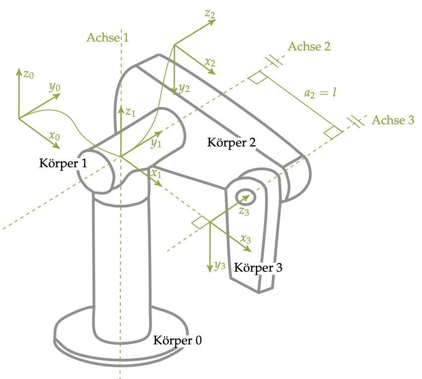 \[D_2 = \begin{bmatrix} \mathbf{E} & e_z d_i \\ \mathbf{0} & \mathbf{1} \end{bmatrix}\]3.Translation \(-a_{i-1}\) entlang \(x_{i-1}\)