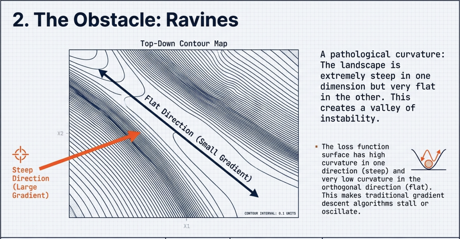 - curvature 가 방향마다 다르다 : 최적화 어려움