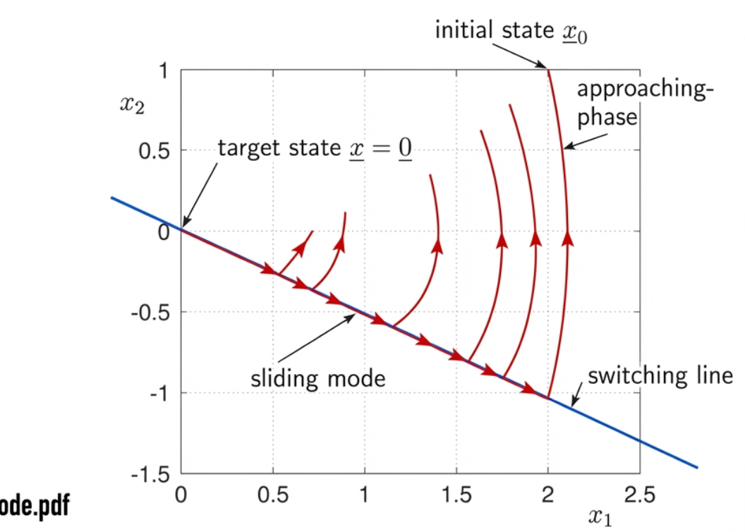 - 2. Sliding Mode : 일단 평면에 도달하면, 그 위에서 벗어나지 않고 목표상태로 수렴한다.